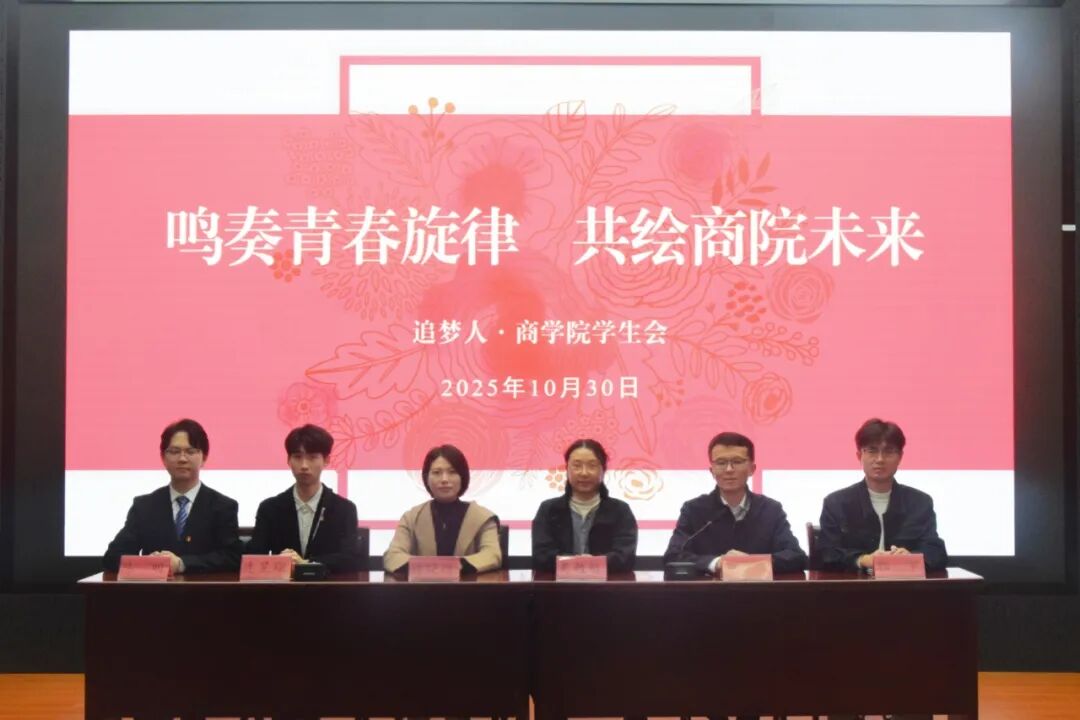 2025年10月30日下午,商学院第三次团代会暨第三次学生代表大会在图书馆逸夫报告厅顺利召开。商学院党委副书记叶姗姗、全体辅导员、兄弟学院代表及商学院学生代表参会,大会由商学院第二届主席团成员连昱翔主持。
