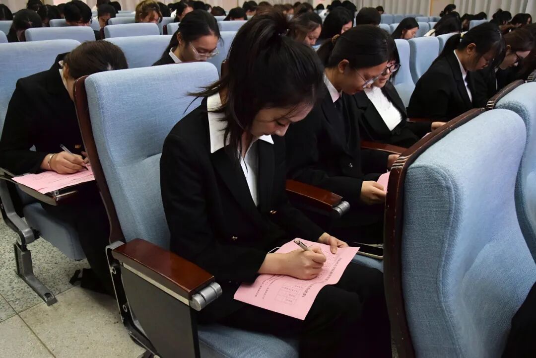 叶姗姗代表学院党政领导班子作总结讲话。她首先祝贺大会圆满落幕,感谢上一届学生干部在迎新、竞赛、日常服务中的付出,同时对新一届团委学生干部提三点要求:拓宽视野,在学生工作中提高管理能力;深化认知,在实务开展中锤炼过硬本领;升华格局,在服务同学中彰显青春担当,助力学院学生工作再上新台阶。