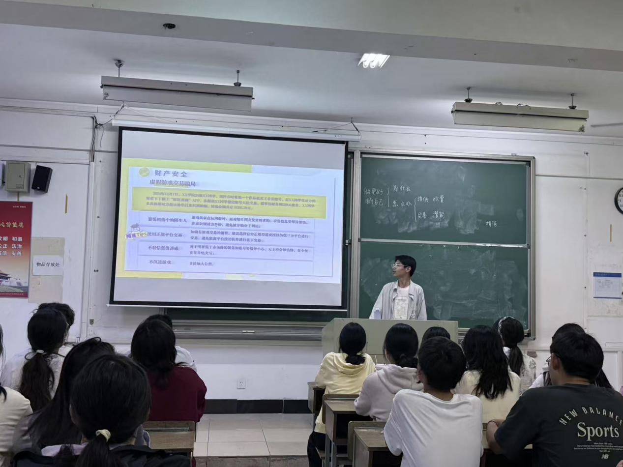 为了防止初入校园、接轨社会的25级大一新生遭受电信诈骗, 9月28日晚6时30分商学院2506班在综南305开展了电信诈骗安全教育主题班会。本次班会由商学院2506班的治保委员杨浩然主持, 2506班全体同学到场参加。