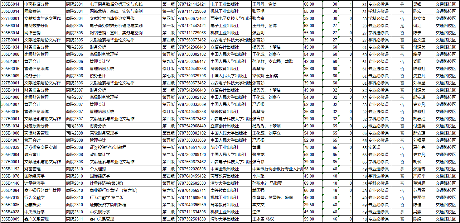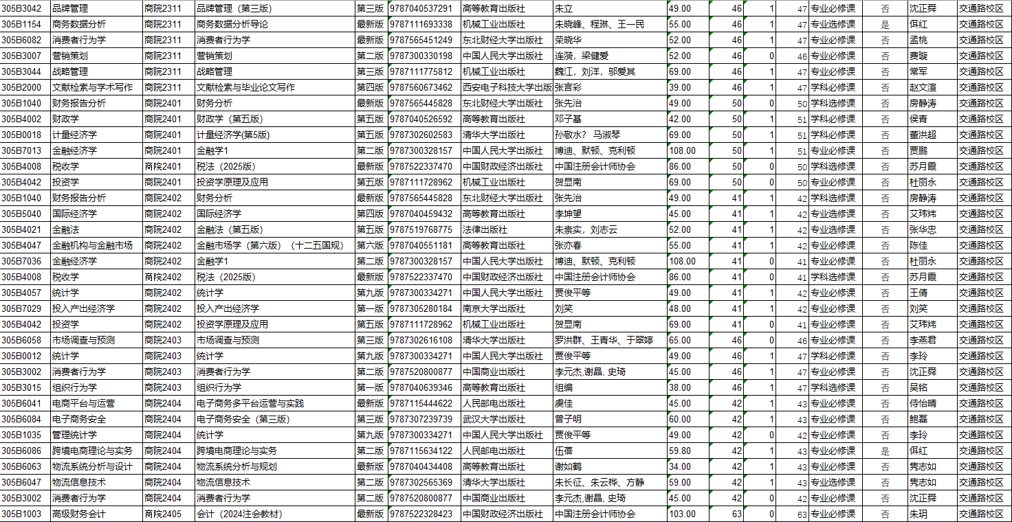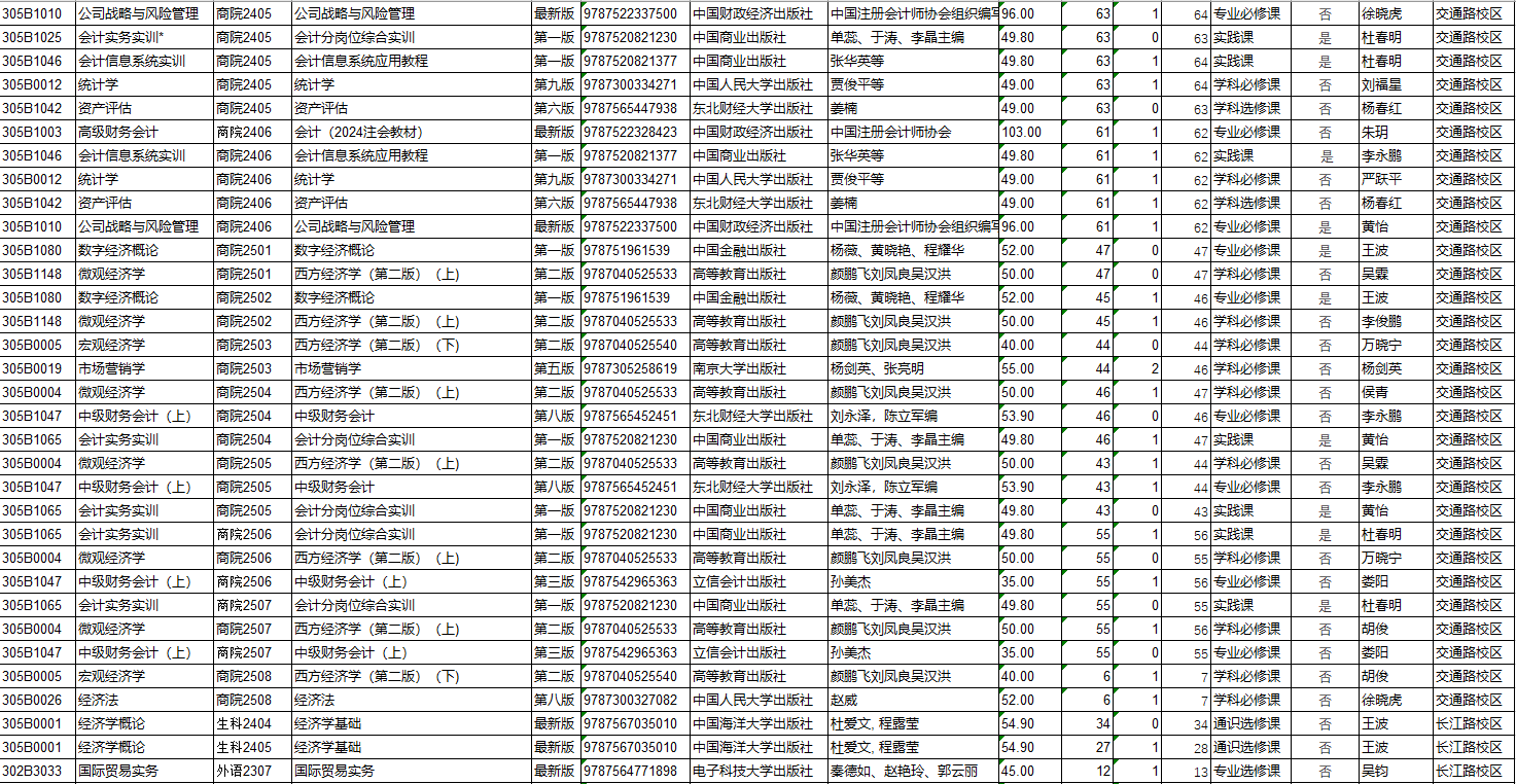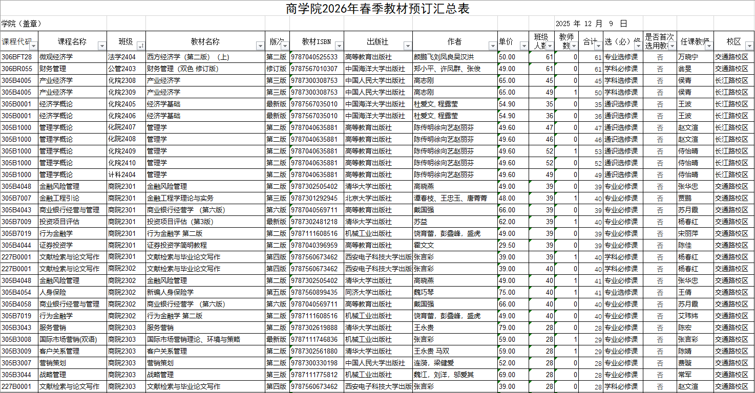 商学院2026年春季教材预订公示
