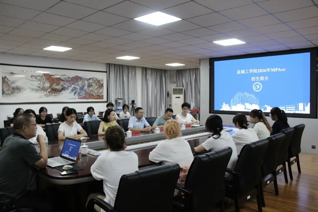 宣讲会上,何逢标对薛鹏的到来表示热烈欢迎,并强调了此次活动对同学们了解研究生报考信息的重要意义。薛鹏针对盐城工学院2026年MPAcc招生政策,从学习生活环境、培养方向、培养特色及成效、考试科目及招生计划人数五个方面进行了详细介绍,并诚挚欢迎我院学子积极报考。